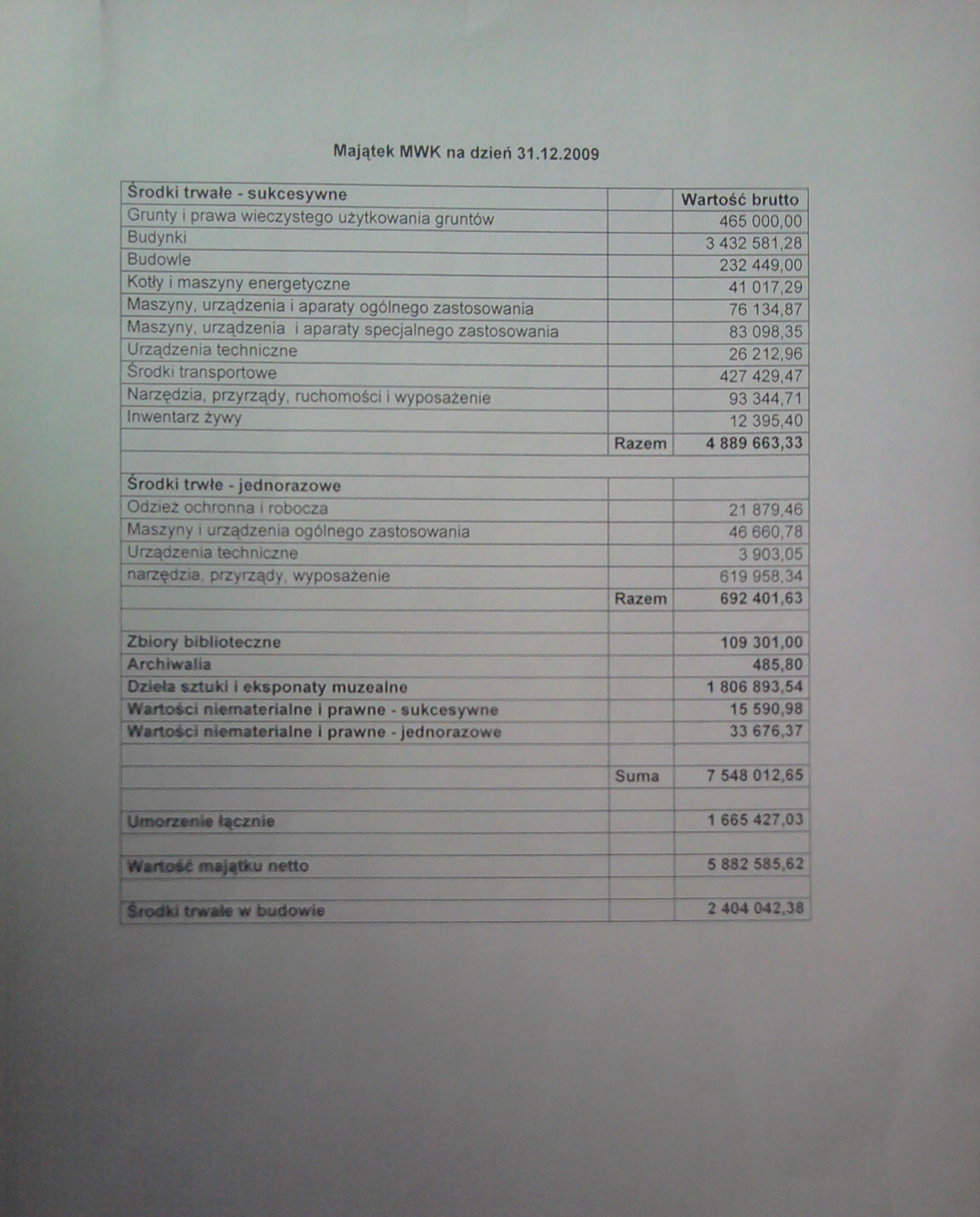 Majątek Muzeum Wsi Kieleckiej na dzień 31.12.2009